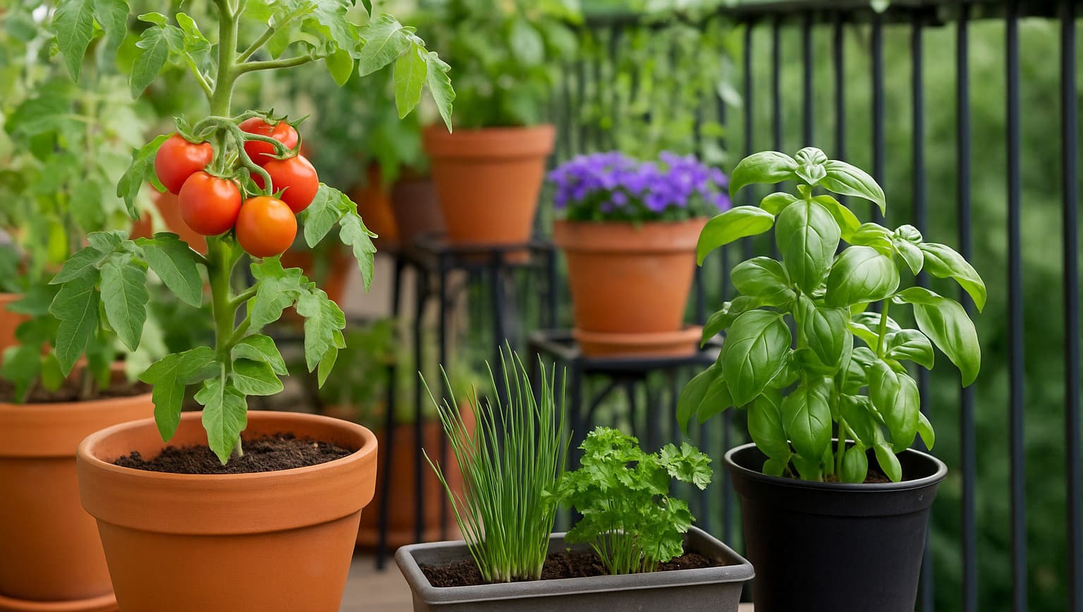 بالکنهای رو به شرق یا جنوب: معمولاً آفتاب کافی دارند و برای گیاهانی مثل گوجه فرنگی، فلفل یا گل رز ایدهآل هستند.