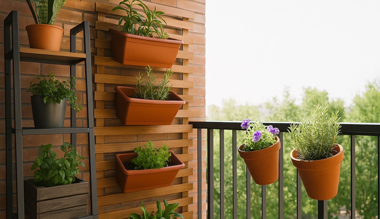 - گلدانهای ریلی: گلدانهایی که به نرده بالکن قلاب میشوند، مناسب برای گلها، توتفرنگی یا سبزیجات سالادی هستند.