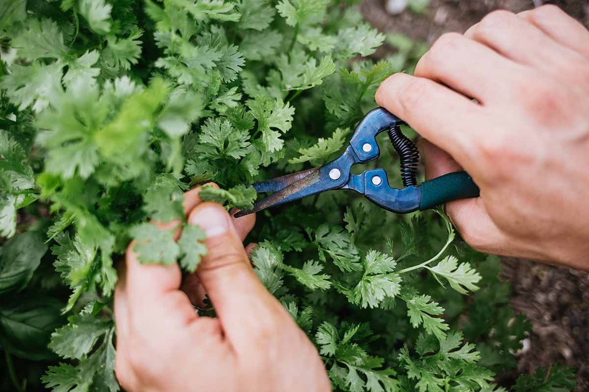 - میتوانید برگها را با قیچی بچینید یا بوته را کامل از سطح خاک قطع کنید.