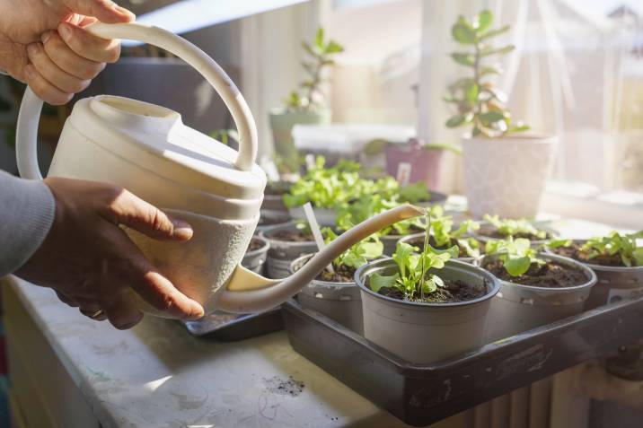 4. ابزار مناسب: برای گلدانهای کوچک از اسپری یا آبپاش استفاده کنید تا هم برگها تازه بمانند و هم خاک به آرامی خیس شود.